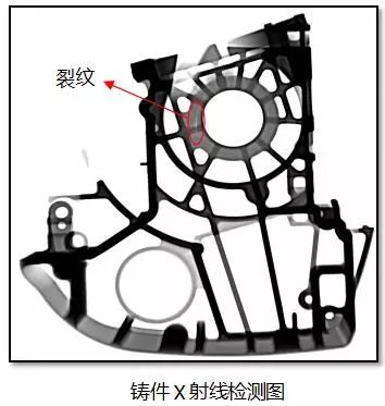 裂紋在X射線檢測圖像中呈淺色線條狀。